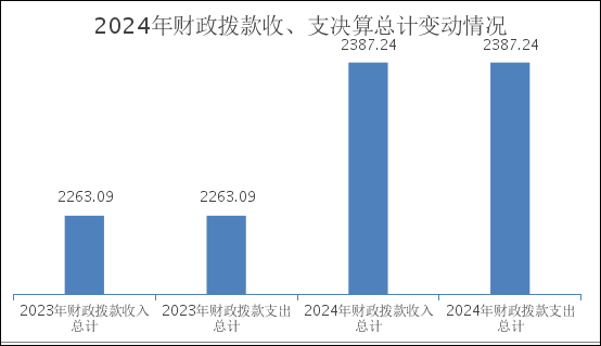 2024年度财政拨款收入总计为2387.24万元,支出总计为2387.24万元。与2023年度相比,财政拨款收入总计增加124.15万元,增加5.49%;支出总计增加124.15万元,增加5.49%。主要变动原因是人员增加导致人员经费增加。