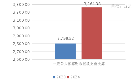 2024年度一般公共预算财政拨款支出3,261.38万元,占本年支出合计的100.00%。与2023年度相比,一般公共预算财政拨款支出增加461.46万元,增长16.48%。主要变动原因是其他对个人和家庭的补助增加导致。