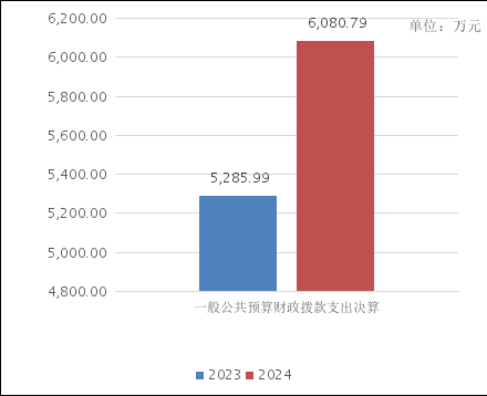 2024年度一般公共预算财政拨款支出6,080.79万元,占本年支出合计的99.95%。与2023年度相比,一般公共预算财政拨款支出增加794.80万元,增长15.04%。主要变动原因是我单位本年度其他对个人和家庭的补助增加导致变动。