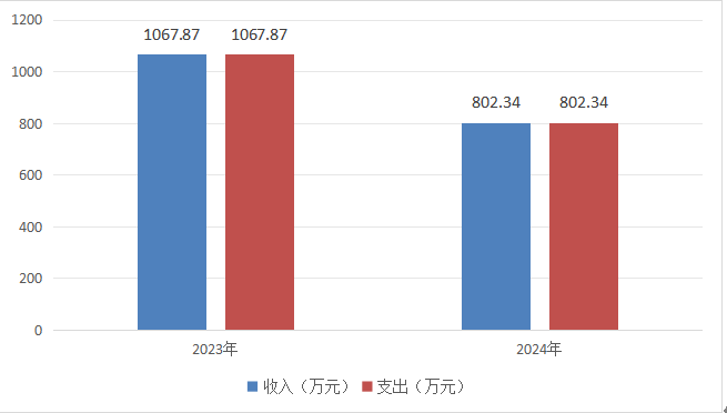 2024年度财政拨款收入、支出总计均为802.34万元。与2023年度相比,财政拨款收入总计、支出总计各减少265.53万元,下降24.87%。主要变动原因是公共卫生服务人口数减少,导致财政拨款收入减少。