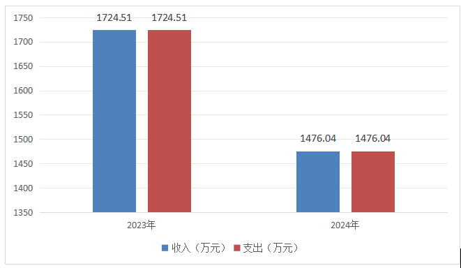 2024年度收入、支出总计均为1476.04万元。与2023年度相比,收入、支出总计各减少248.47万元,下降14.41%。主要变动原因是减少了部分医疗服务,影响收入。