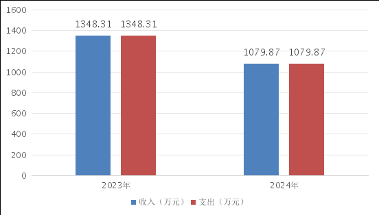 2024年度收入、支出总计均为1079.87万元。与2023年度相比,收入、支出总计各减少268.44万元,下降19.91%。主要变动原因是人员减少,财政收入减少。