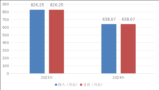 2024年度财政拨款收入、支出总计均为638.07万元。与2023年度相比,财政拨款收入总计、支出总计各减少188.18万元,下降22.78%。主要变动原因是人员减少,财政收入减少。