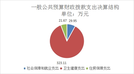 2024年度一般公共预算财政拨款支出374.73万元,主要用于以下方面:社会保障和就业支出29.95万元,占7.99%;卫生健康支出323.11万元,占86.22%;住房保障支出21.67万元,占5.78%。