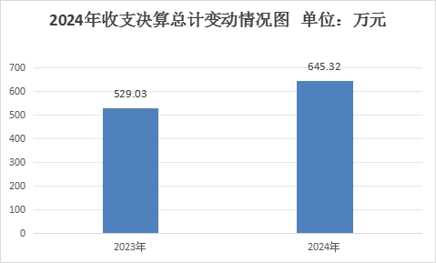 2024年度收入、支出总计均为645.32万元。与2023年度相比,收入、支出总计各增加116.29万元,增长21.98%。主要变动原因是原鸭池卫生院因撤乡并镇财务账目合并。