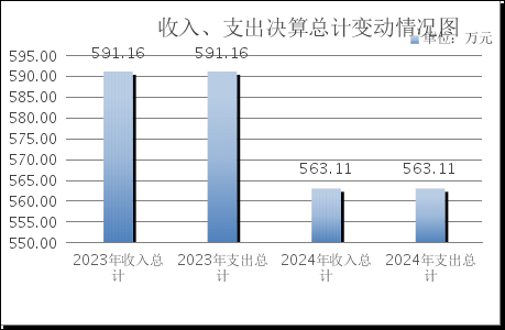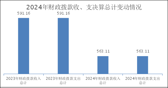 2024年度财政拨款收入总计为563.11万元,支出总计为563.11万元。与2023年度相比,财政拨款收入总计减少28.05万元,减少4.74%;支出总计减少28.05万元,减少4.74%。主要变动原因是人员类经费减少。