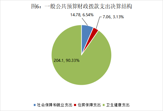 2024年度一般公共预算财政拨款支出225.94万元,主要用于以下方面:社会保障和就业支出14.78万元,占6.54%;卫生健康支出204.10万元,占90.33%;住房保障支出7.06万元,占3.13%。