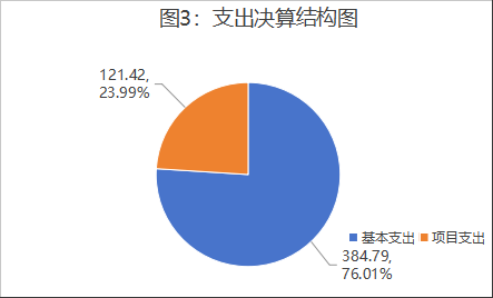 2024年度本年支出合计506.20万元,其中:基本支出384.79万元,占76.01%;项目支出121.42万元,占23.99%。