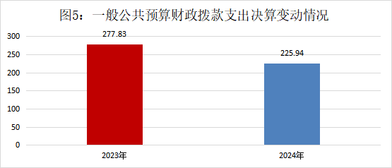 2024年度一般公共预算财政拨款支出225.94万元,占本年支出合计的44.63%。与2023年度相比,一般公共预算财政拨款支出减少51.89万元,下降18.68%。主要变动原因是2024年度财政拨款收入减少。