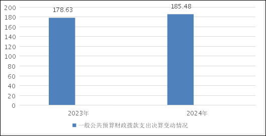2024年度一般公共预算财政拨款支出185.48万元,占本年支出合计的100%。与2023年度相比,一般公共预算财政拨款支出增加6.85万元,增长3.84%。主要变动原因是单位新增人员。