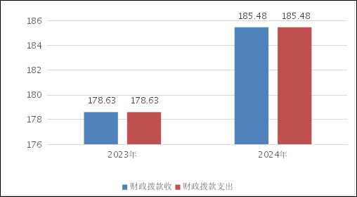 2024年度财政拨款收入、支出总计均为185.48万元。与2023年度相比,财政拨款收入总计、支出总计各增加6.85万元,增长3.84%。主要变动原因是单位新增人员。