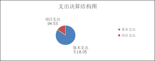 2024年度本年支出合计612.58万元,其中:基本支出518.05万元,占84.57%;项目支出94.53万元,占15.43%;上缴上级支出0万元,占0%;经营支出0万元,占0%;对附属单位补助支出0万元,占0%。 (注:数据来源于财决04表)
