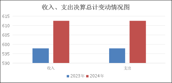 2024年度收入、支出总计均为612.58万元。与2023年度相比,收入、支出总计各增加14.69万元,增长2.46%。主要变动原因是教职工职称晋升和薪级工资调整。