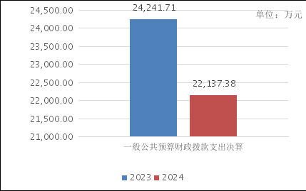 2024年度一般公共预算财政拨款支出22,137.38万元,占本年支出合计的94.69%。与2023年度相比,一般公共预算财政拨款支出减少2,104.33万元,下降8.68%。主要变动原因是项目支出减少导致。