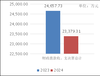 2024年度财政拨款收入、支出总计均为23,379.31万元。与2023年度相比,财政拨款收入总计、支出总计各减少1278.42万元,下降5.18%。主要变动原因是本年度项目经费减少导致。
