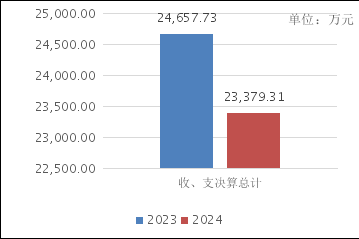 2024年度收入、支出总计均为23,379.31万元。与2023年度相比,收入、支出总计各减少1278.42万元,下降5.18%。主要变动原因是本年度项目经费减少导致。
