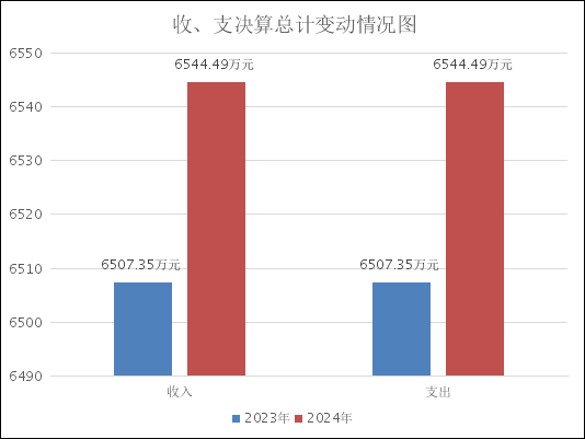 2024年度收入、支出总计均为6544.49万元。与2023年度相比,财政拨款收入、支出各增加了37.14万元,增长0.57%,主要变动原因是2024年增加了基础设施建设支出。
