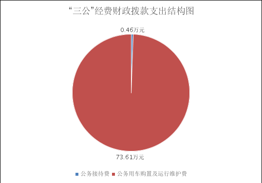 2024年度“三公”经费财政拨款支出决算中,因公出国(境)费支出决算0万元,占0%;公务用车购置及运行维护费支出决算73.61万元,占99.38%;公务接待费支出决算0.46万元,占0.62%。具体情况如下:
