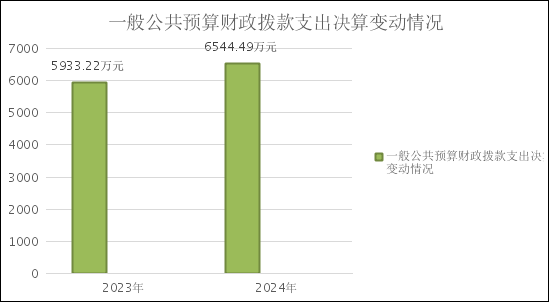 2024年度一般公共预算财政拨款支出6544.49万元,占本年支出合计的100%。与2023年度相比,一般公共预算财政拨款支出增加611.27万元,增长10.3%,主要变动原因是2024年减少了政府性基金预算财政拨款。