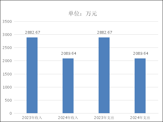 2024年度收入、支出总计均为2089.64万元。与2023年度相比,收入、支出总计各减少793.03万元,下降27.51%。主要变动原因是项目支出减少。