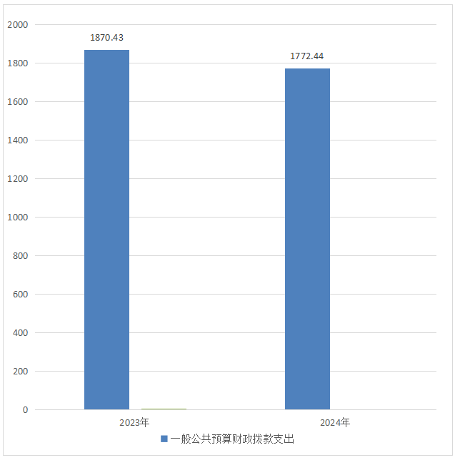 2024年度一般公共预算财政拨款支出1772.44万元,占本年支出合计的84.82%。与2023年度相比,一般公共预算财政拨款支出减少97.99万元,下降5.24%。主要变动原因是严格推行厉行节约的政策及项目支出的减少。