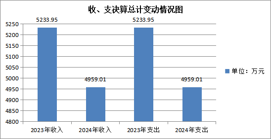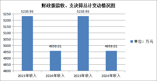 2024年度财政拨款收入、支出总计均为4959.01万元。与2023年度相比,财政拨款收入总计、支出总计各减少274.94万元,下降5.54%。主要变动原因是基础设施建设项目支出减少。