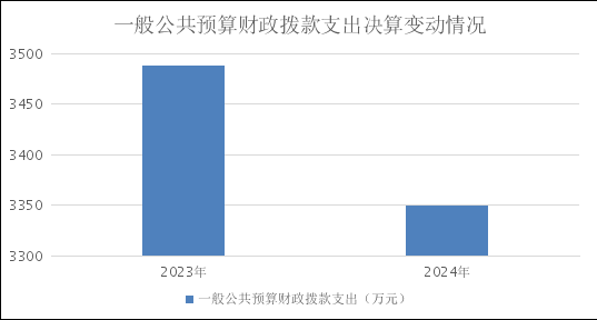 2024年度一般公共预算财政拨款支出3349.64万元,占本年支出合计的84.42%。与2023年度相比,一般公共预算财政拨款支出减少138.77万元,下降3.98%。主要变动原因是农林水支出减少。