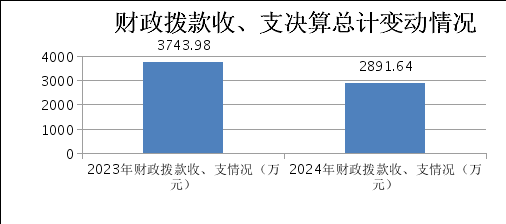 2024年度财政拨款收入、支出总计均为2891.64万元。与2023年度相比,财政拨款收入总计、支出总计各减少852.34万元,下降22.77%。主要变动原因是2022年交通三年提升行动项目、2023年耕地恢复项目等项目资金收入、支出减少。