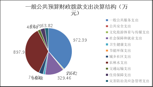 2024年度一般公共预算财政拨款支出2529.09万元,主要用于以下方面:一般公共服务支出972.39万元,占38.45%;公共安全支出7.67万元,占0.3%;文化旅游体育与传媒支出15.42万元,占0.61%;社会保障和就业支出329.46万元,占13.03%;卫生健康支出36.48万元,占1.44%;节能环保支出0.5万元,占0.02%;城乡社区支出76.03万元,占3.01%;农林水支出897.9万元,占35.5%;交通运输支出48.68万元,占1.92%;住房保障支出80.75万元,占3.19%;灾害防治及应急管理支出63.82万元,占2.52%。
